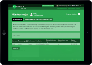 Bepaal wie jouw trustees (vertrouwelingen) zijn en nodig ze uit. Na hun acceptatie is de informatie in jouw levensdossier veilig bereikbaar voor de mensen die voor jou belangrijk zijn. Voor wanneer jou iets zou overkomen waardoor je dat zelf niet meer kunt